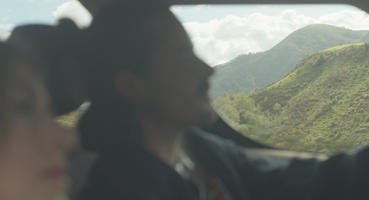 A couple in a car, on a mountain road. He’s driving, she’s the passenger. The stunning view, the warmth of the sun through the windshield… she can rely on him and surrender to the present moment. Still, she has to make sure she strikes the right pose, adjusting the window to control the wind blowing into the car and through her hair. Does he notice how perfectly she plays her role at every moment ?